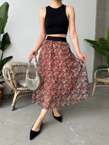 Baskılı Astarlı Uzun Etek Kırmızı (Beden: M) adet
