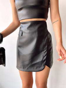 Cep Detaylı Oval Kapaklı Deri Etek Siyah H240048 (Beden: L) adet
