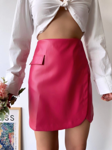 Cep Detaylı Oval Kapaklı Deri Etek Fuşya H240048 (Beden: S) adet