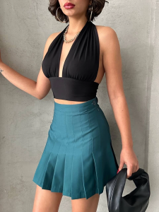 Pileli Düğmeli Etek Yeşil S24811 (Beden: M)