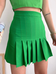 Pileli Düğmeli Etek Açık Yeşil S24811 (Beden: M) adet