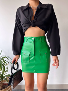 Önden İki Cepli Deri Etek Yeşil H240040 (Beden: M)