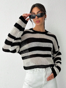 Çizgili Bisiklet Yaka Triko Kazak Beyazsiyah (Beden: Standart) adet