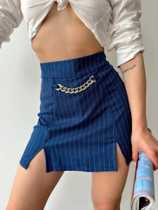 Zincir Detaylı Çizgili Şort Etek Lacivert (Beden: M) adet