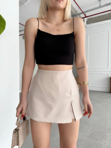 Tek Yırtmajlı Şort Etek Bej (Beden: S) adet