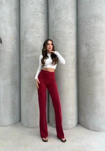 Önü Cumalı İthal Krep Pantolon Bordo (Beden: M)