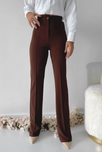 Önü Cumalı İthal Krep Pantolon Kahve (Beden: S)