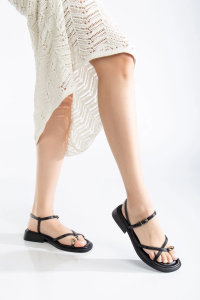 Olira Siyah Simli Kemerli Sandalet (Numara: 37)