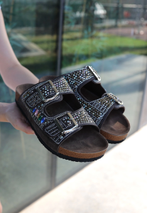 Edaj Siyah Nubuk Boncuk İşlemeli Terlik (Numara: 37)