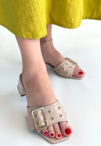 Caren Bej Cilt Topuklu Terlik (Numara: 37)