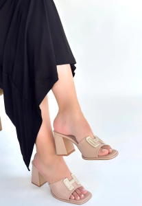 Ciey Bej Cilt Topuklu Terlik (Numara: 38)