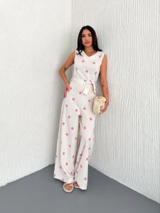Sırt Dekolteli Keten Beyaz Tulum S1036 (Beden: Xl) adet
