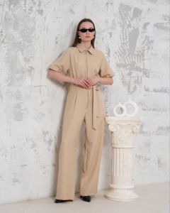 Kuşaklı Gömlek Yaka Salaş Tulum Bej S255822 (Beden: M) adet