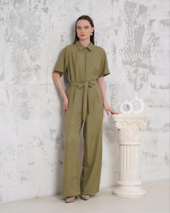 Kuşaklı Gömlek Yaka Salaş Tulum Haki S255822 (Beden: M)