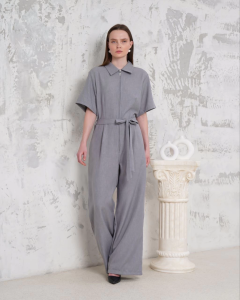 Kuşaklı Gömlek Yaka Salaş Tulum Gri S255822 (Beden: L) adet