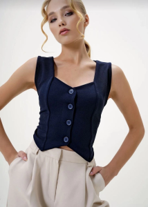 Krep Kumaş Düğmeli Yelek Lacivert S3395 (Beden: S)
