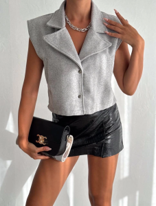 Önü Çıtçıtlı Cepli Kaşe Yelek Gri F2253 (Beden: S) adet
