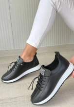 Monya Siyah Cilt Bağcıklı Spor Ayakkabı (Numara: 36)