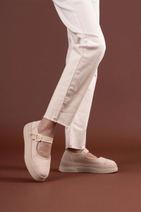 Monya Bej Cilt Bağcıklı Spor Ayakkabı (Numara: 37)