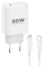Joko JK89 30W Type-C Çıkışlı Ekstra DC66 1M Type-C to Lightning Kablolu PD Şarj Cihazı - Beyaz adet