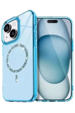 Newface Apple iPhone 15 Plus Live Diamond Magsafe Kapak - Mavi adet