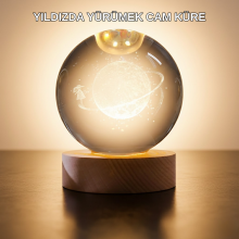 Gün Işığı LED’li 3D Kristal Galaksi Küre Ahşap Tabanlı Dekoratif Lamba adet