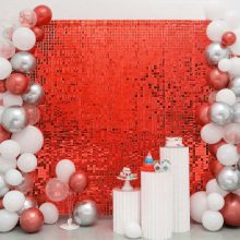Kırmızı Renk Dikdörtgen Kesim Parlak Sim Görünümlü Fon Perde Dekor 1×2 Metre