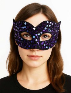 Mor Renk Arkadan Lastikli Pul Payet İşlemeli Balo After Parti Maskesi adet