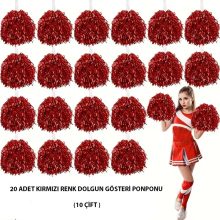 10 Çift ( 20 Adet ) Kırmızı Renk 23 Nisan 19 Mayıs 29 Ekim Okul Gösteri Ponponları adet