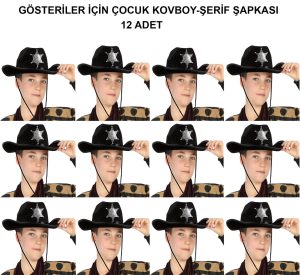 Kovboy Şerif Şapkası Siyah 12 Adet – Kostüm, Parti ve Gösteri Şapkası