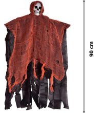 Led Işıklı Kahkaha Atan Sesli Sensörlü Ürpertici Kuru Kafa Kanlı Korku Hayalet Saçaklı Dekor 90x50 cm adet