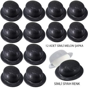 Siyah Renk Simli Melon Yuvarlak Parti Şapkası 12 Adet adet