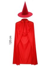 Yetişkin Boy 120 cm Kırmızı Yakalı Pelerin ve Kırmızı Cadı Şapkası adet