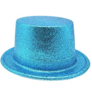 Floresan Mavi Renk Simli Uzun Fötr Melon Şapka 12 cm adet