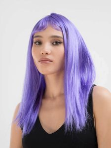 Lila Renk Kısa Model Parti Peruğu – Lila Renk Küt Saç