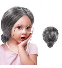 Gri Renk Yaşlı Peruğu Takma Saç Büyükanne Peruğu Yetişkin Çocuk Uyumlu adet