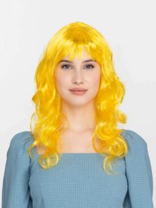 Sarı Renk Uzun Dalgalı Parti Peruğu