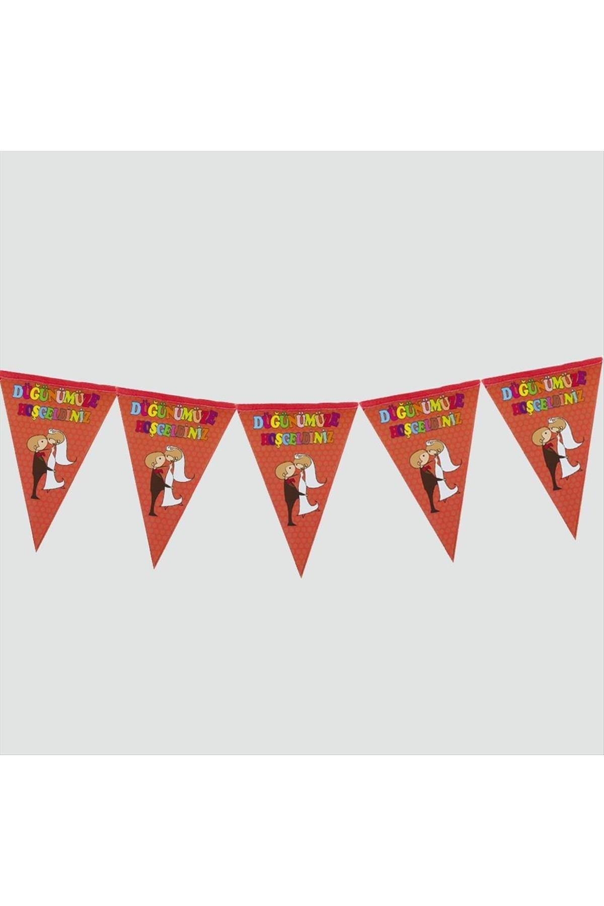 10’lu Düğünümüze Hoşgeldiniz Üçgen Flama-Kırmızı