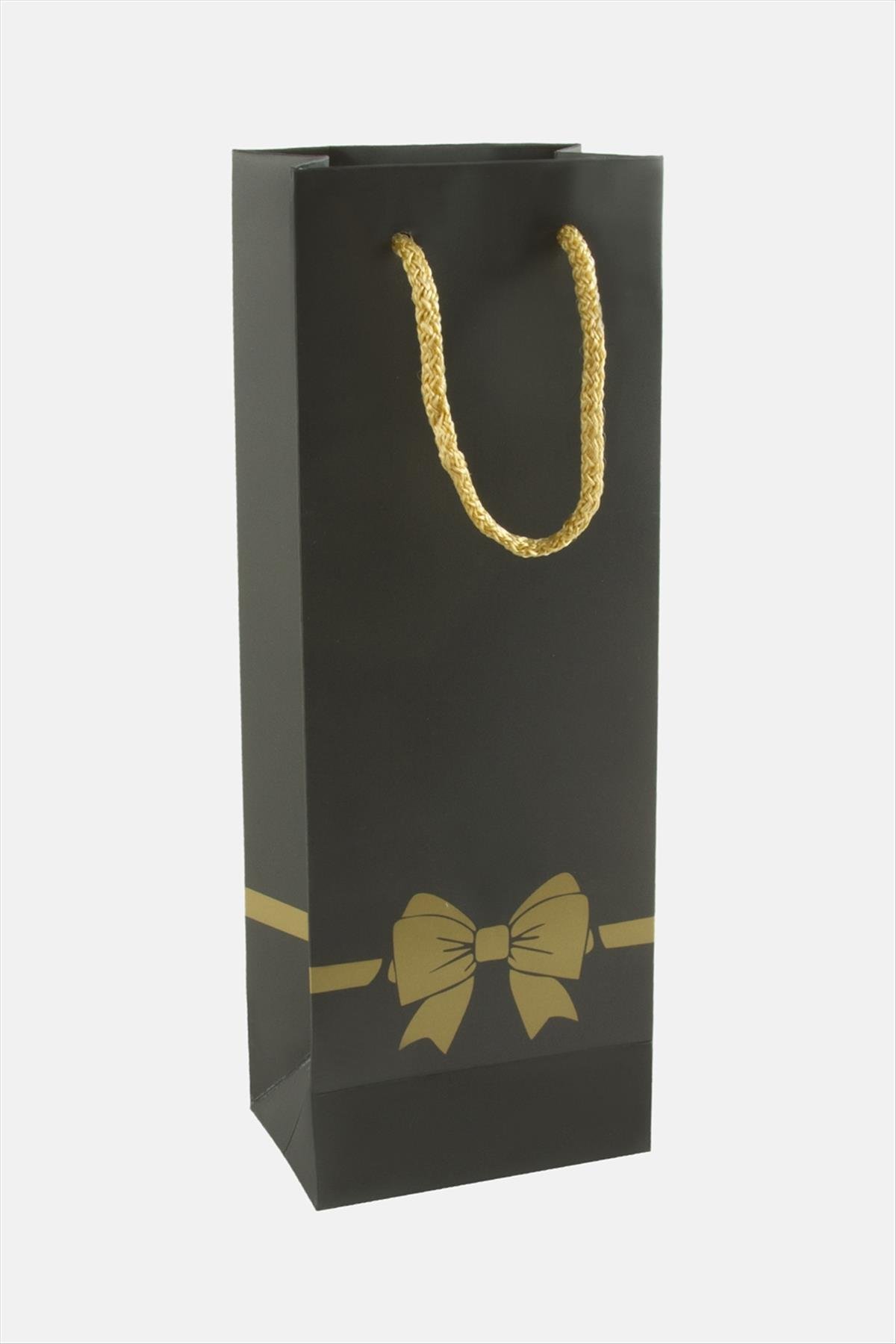 10X26 Benekli İpli Karton Çanta 1 Adet-Siyah