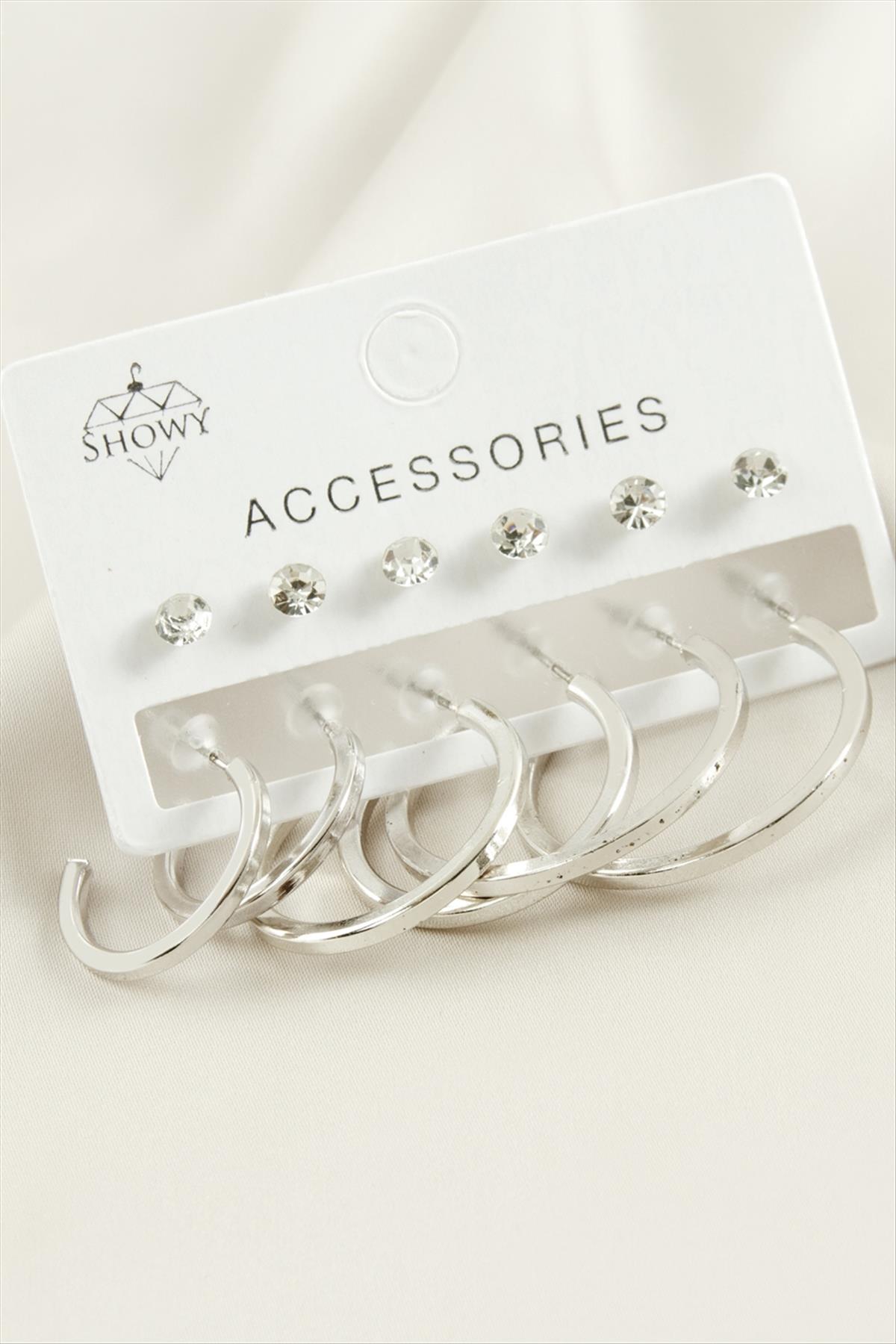 12 Adet Ezme Taşlı Halka Küpe-Gümüş Rengi