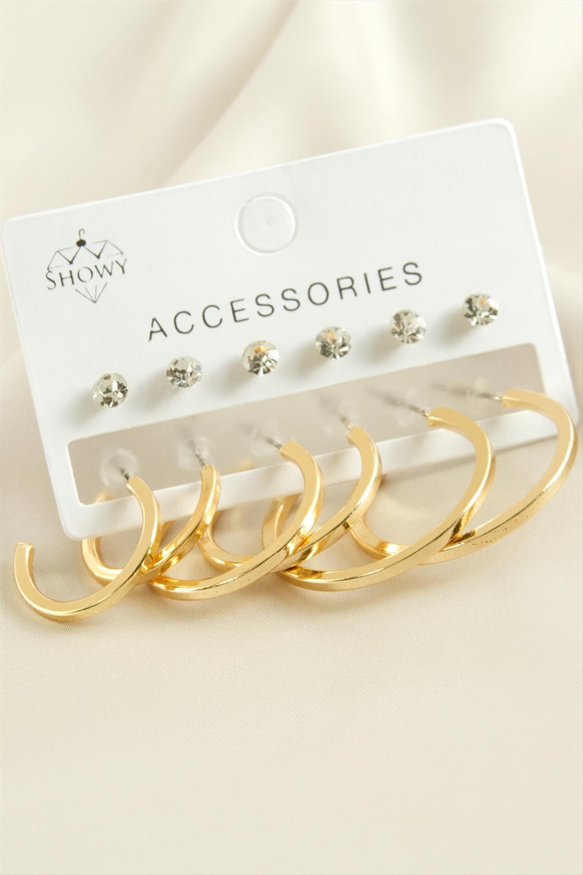 12 Adet Ezme Taşlı Halka Küpe