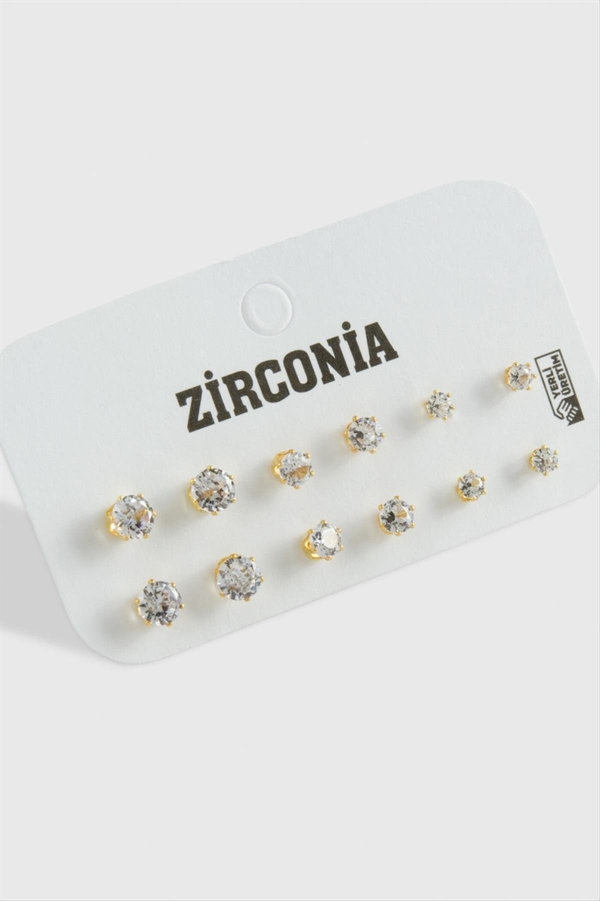 12 Adet Zirkon Tek Taşlı Küpe-Sarı