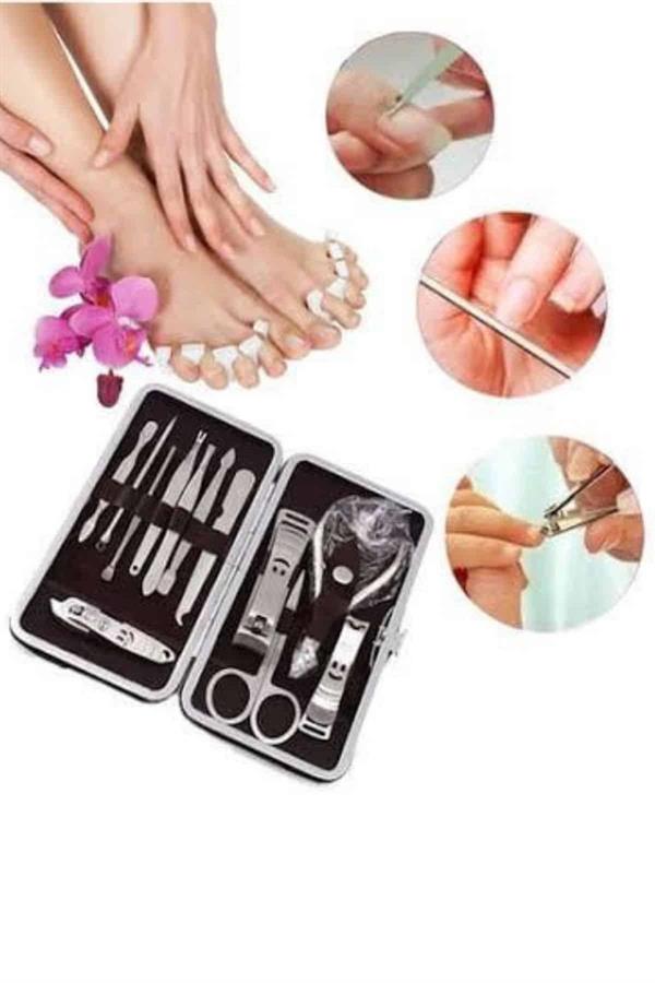 12 Parça Paslanmaz Çelik Kompakt ve Taşınabilir Manikür Makası Tırnak Makası