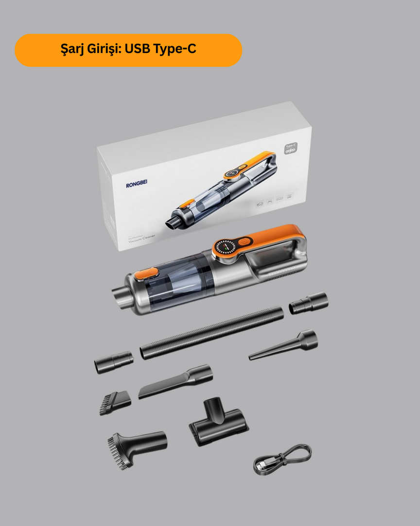 USB Type-C hızlı şarj özelliği ile kısa sürede şarj olur ve 25–30 dakika boyunca kesintisiz çalışabilir. Kablosuz yapısı sayesinde dar alanlarda ve araç içinde kullanım kolaylığı sağlar.