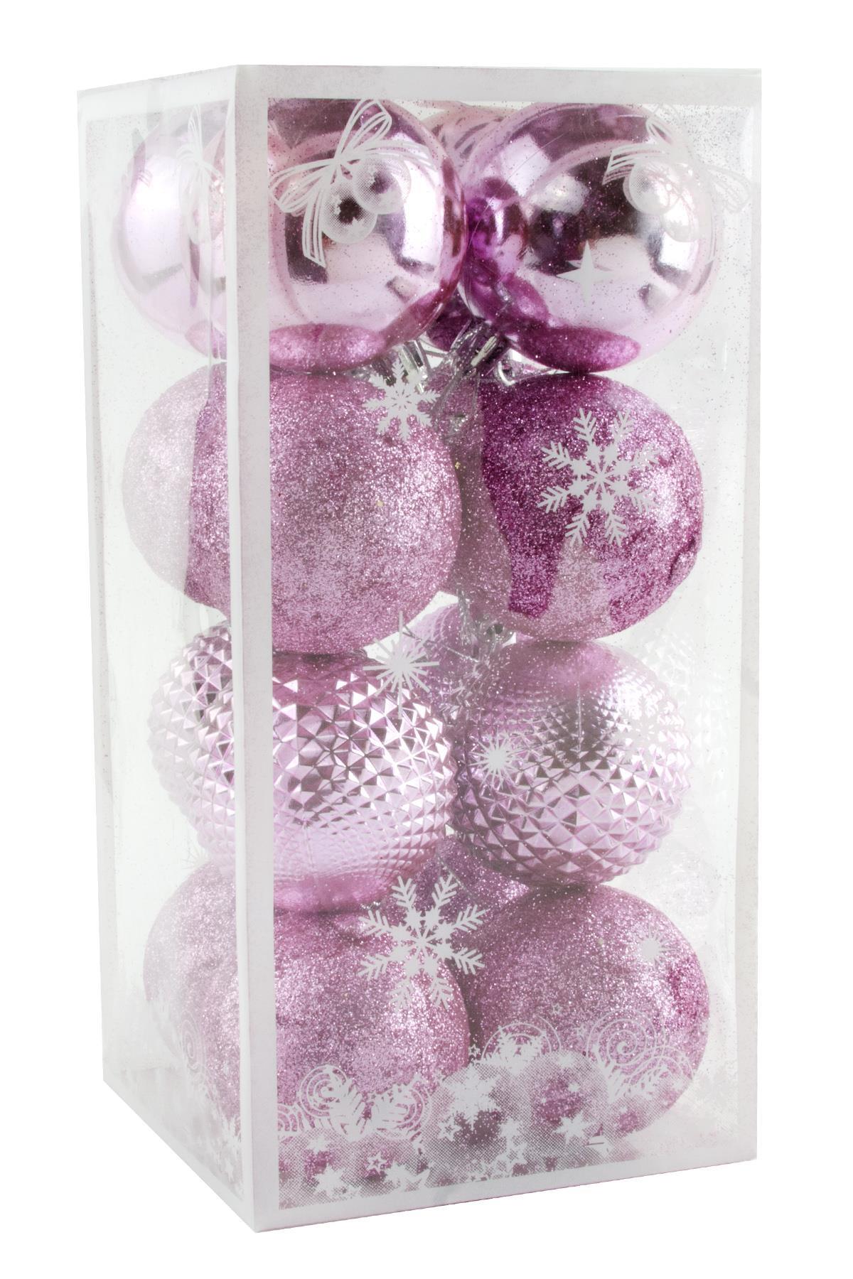 16 Adet Lüks Pembe Renkli Cici Top Yılbaşı Ağaç Süsü-Pembe