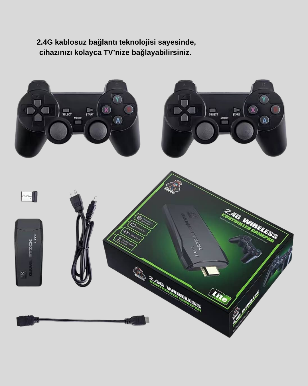Bu kablosuz taşınabilir oyun konsolu, hem retro hem modern oyun severler için özel olarak tasarlanmıştır. Taşınabilir yapısı, dilediğiniz her yerde oyun keyfi yaşamanıza olanak tanırken, 2.4G kablosuz bağlantı özelliği TV’ye kolayca bağlanarak sizi kablo karmaşasından kurtarır.
