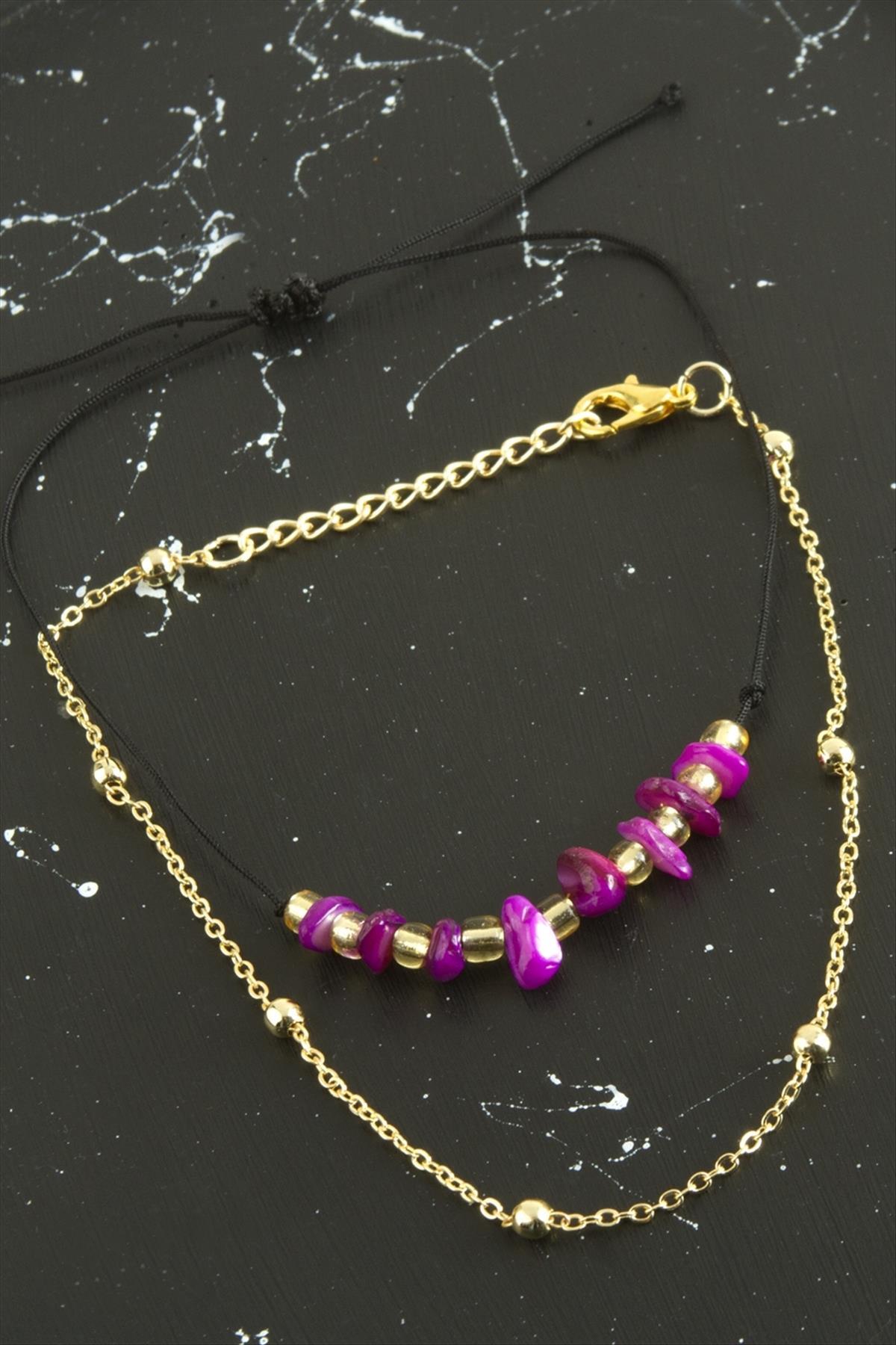 2 Adet Kırık Doğaltaşlı Zincir Halhal-Pembe