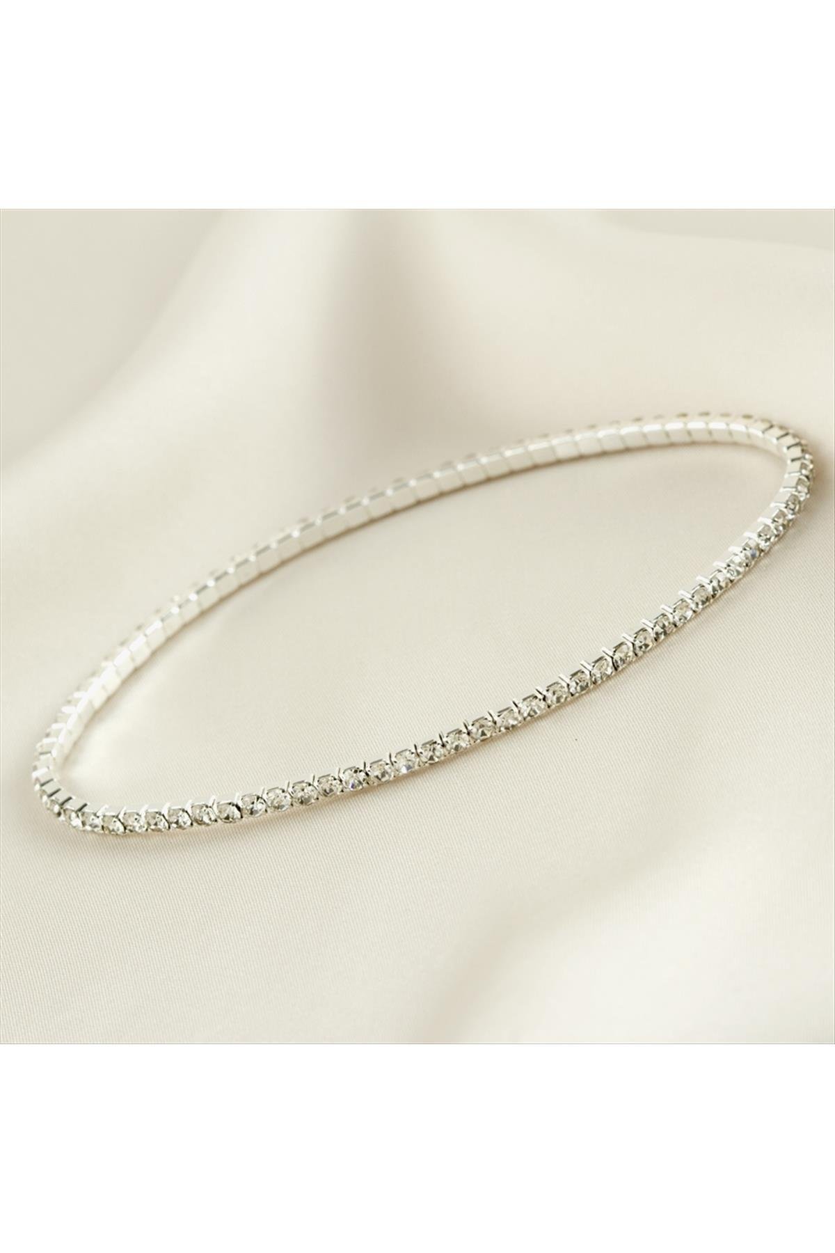 2 mm Minik Şerit Taşlı Suyolu Bileklik-Gümüş Rengi
