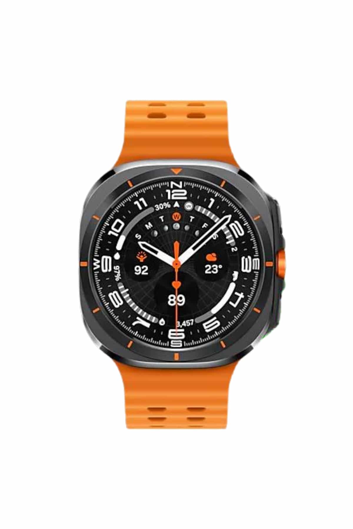 Modern tasarımıyla öne çıkan bu akıllı saat, gümüş kasa rengiyle zarafet katarken, turuncu kordon detayıyla canlı ve enerjik bir tarz sunar. 47 mm çapındaki kompakt yapısı, bilekte şık bir duruş sergilerken aynı zamanda ergonomik bir kullanım deneyimi sağlar.
