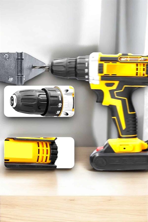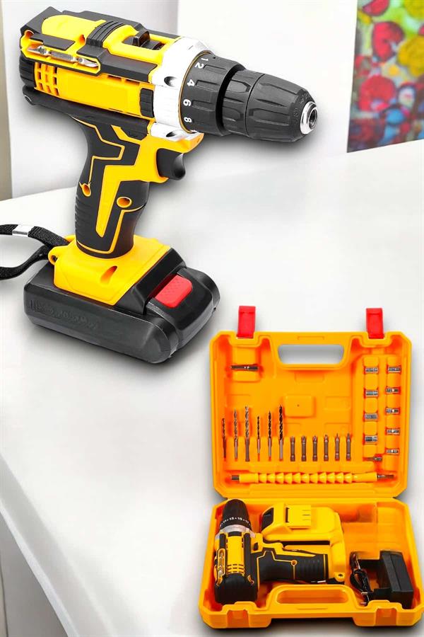 24 Parça Çift Bataryalı Şarjlı Matkap Seti 24W Motor ve Otomatik Mil Kilitli Tasarım